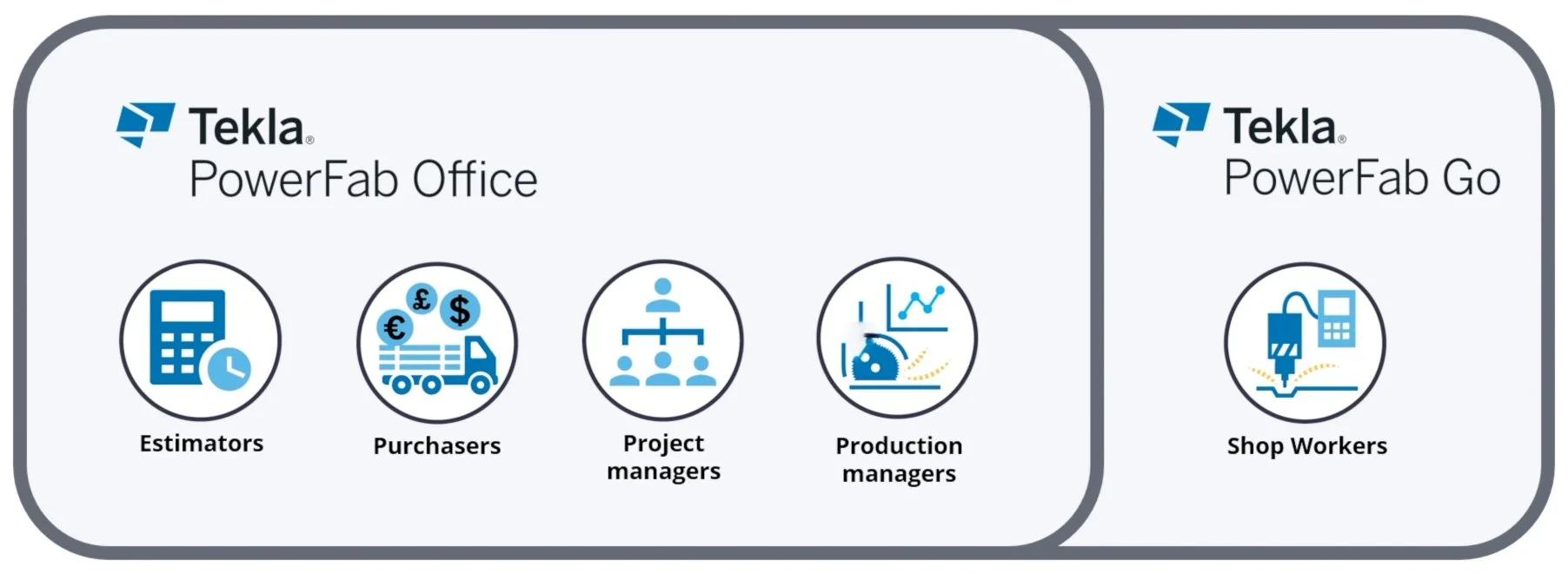IMAGE: Tekla Powerfab Office is a desktop-based solution for office, while shop workers and people in the field use Tekla PowerFab Go, and Trimble Connect.